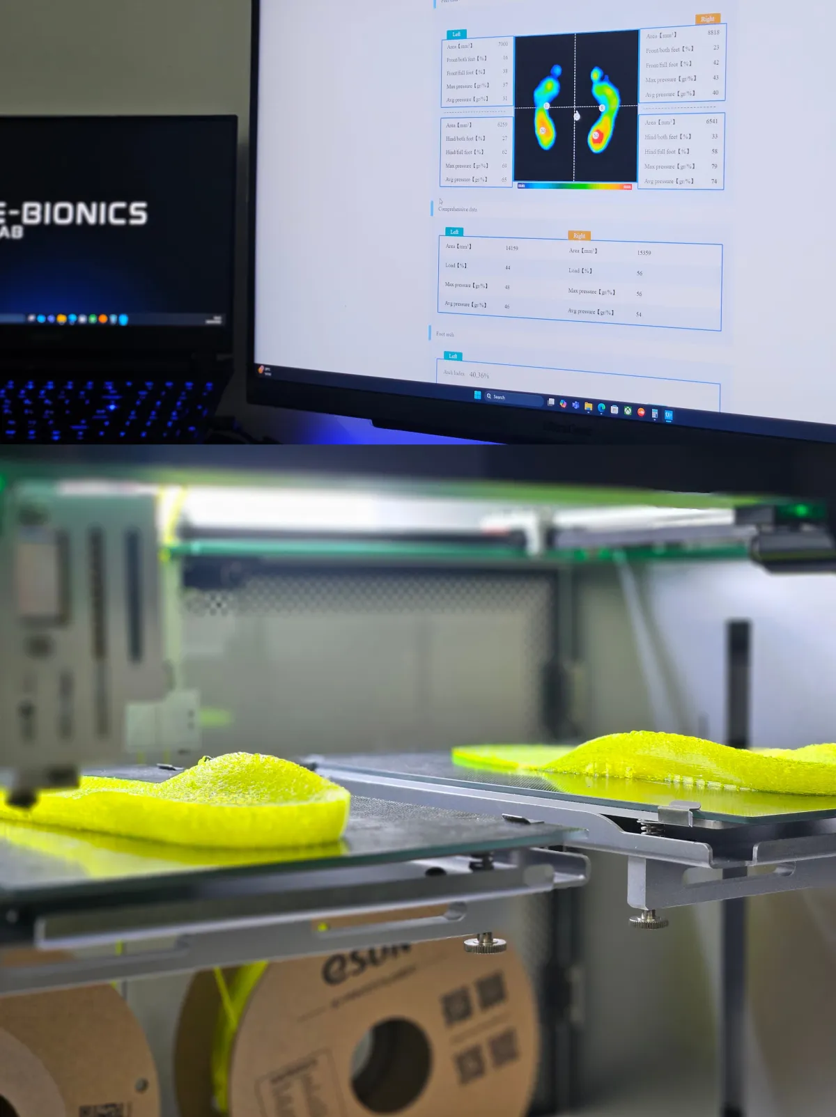 מדרסים בהתאמה אישית מלאה (E-Bionics Lab) לטיפול בכאבי רגליים, ברכיים וגב, כולל אבחון ממוחשב של דריכה ויציבה